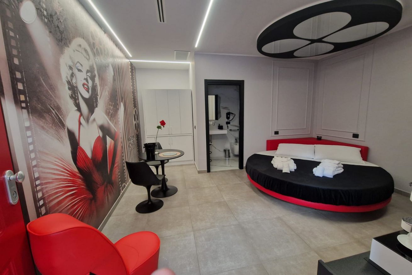 Suite Marilyn: ispirata al mito senza tempo di Marilyn Monroe, questa suite esclusiva unisce charme, romanticismo e comfort moderno. Un’ampia parete raffigurante Marilyn domina la stanza, mentre un maestoso letto rotondo, avvolto da luci soffuse e gocce di specchio sospese al soffitto, creano riflessi avvolgenti che renderanno ogni momento indimenticabile…invitando al relax più totale!